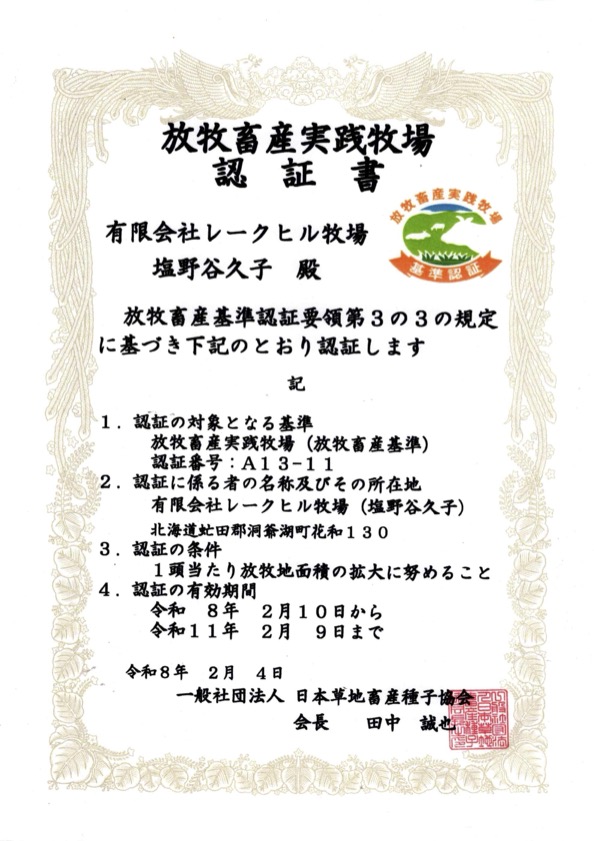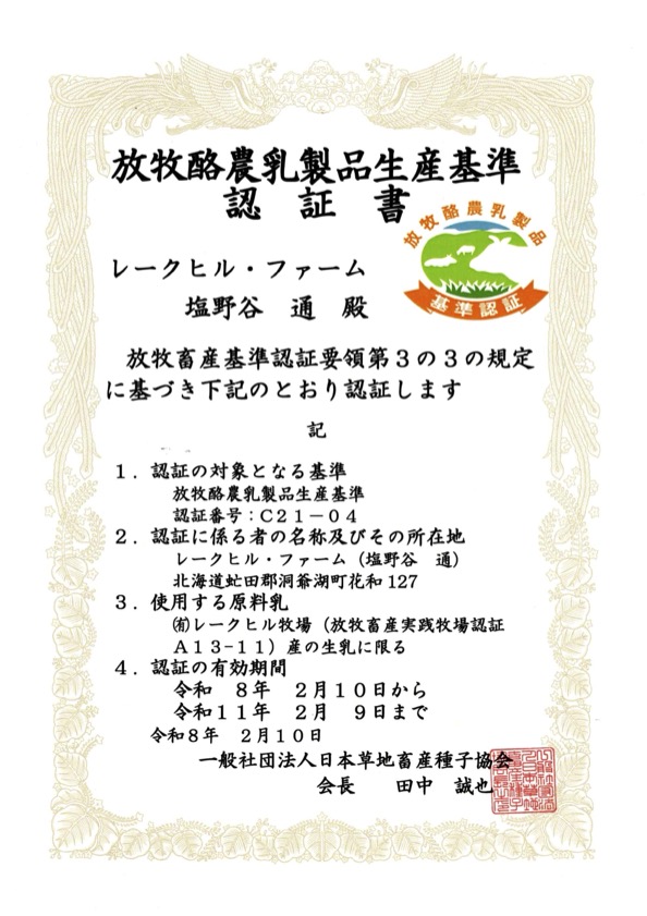 ・放牧畜産実践牧場認証 ・放牧酪農乳製品認証 一般社団法人日本草地畜産種子協会