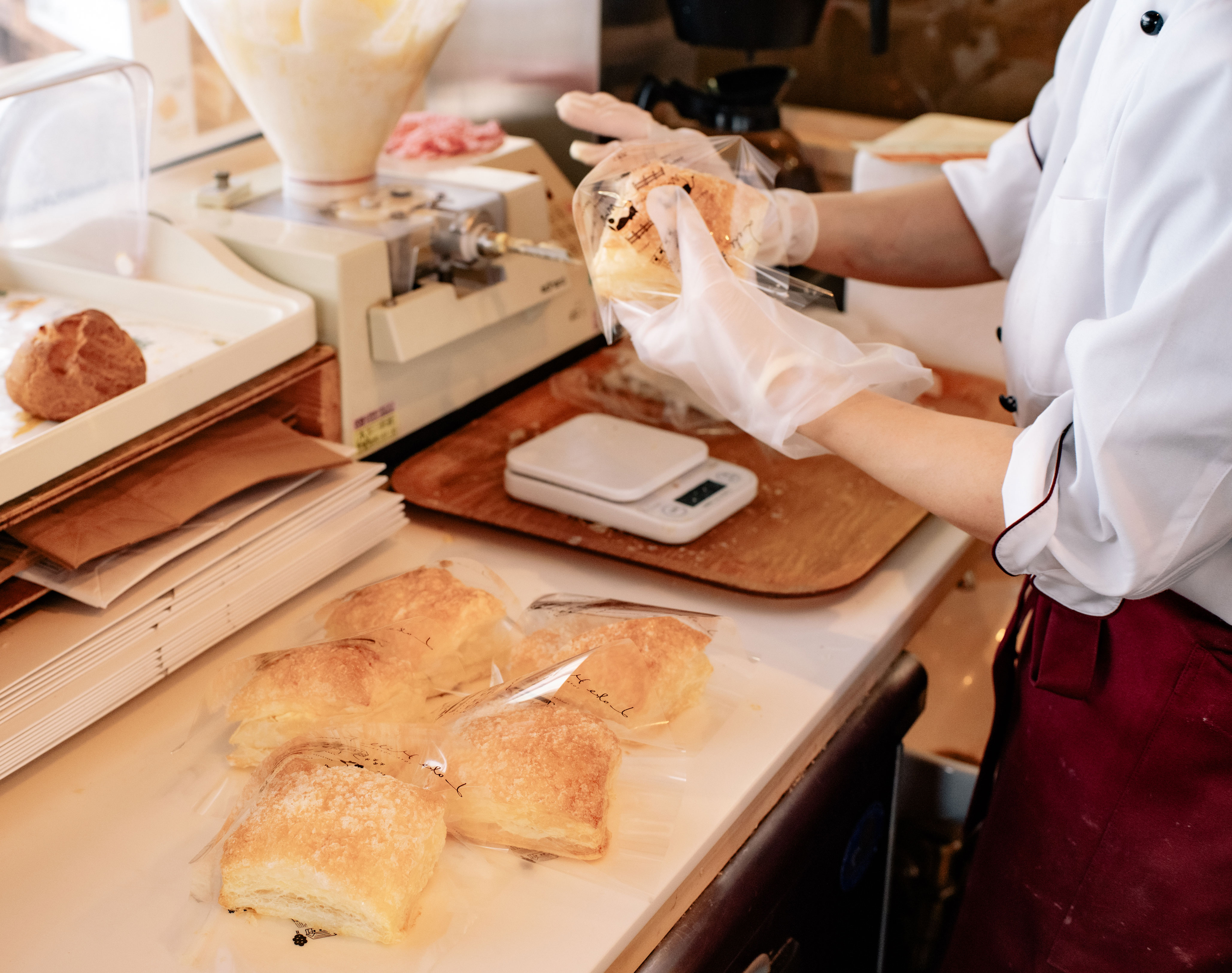 ご注文を聞いてジェラートを盛り、レジでのお会計をしていただきます。観光シーズンや夏休み時期、土日祝はジェラートショップでの接客対応がほとんどですが、平日やオフシーズンはチーズやプリンなど当社製造商品への賞味期限のラベル貼りや、箱詰め、ネット通販などの発送作業などが中心となります。